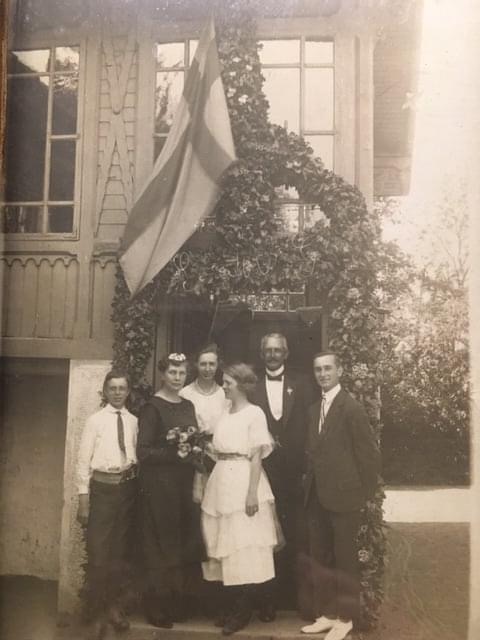 Note: Foto av familjen Gunnarsson. Sannolikt taget 1920, då Gustaf och Mathilda firade silverbröllop.